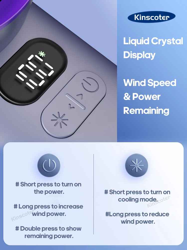 The KINSCOTER Portable Handheld Turbo Fan delivers exceptional versatility with its 100 adjustable wind speeds, enabling precise control over airflow intensity to suit your personal comfort needs.